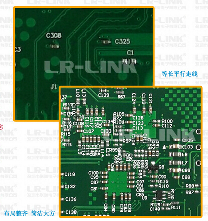 优质网卡元件布局整齐,功能分区明显,整体简洁大方。劣质卡元件排放随意,引线过长。