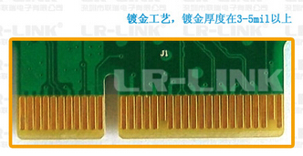 金手指是指网卡和主板的接触部分,优质网卡应选择镀金工艺,镀金厚度至少在3—5mil以上,表面金黄。