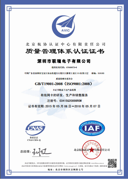 公司在各部门共同努力和配合下,经过半年的推行落实ISO9001;2008质量管理体系工作,促使企业自身管理上了新台阶.2015年4月30日,公司顺利的通过了ISO9001质量管理体系认证审核,本次认证是由北京航协认证中心专家审核小组现场审核认定,这标志着公司的质量管理体系已得到第三方认证机构的认可.ISO是国际标准化组织的英文缩写,其全称是International Organization for Standardization.我公司自2014年8月起,全面启动ISO9001质量管理体系的引入和认证工作.通过运用ISO9001质量管理体系的理念和标准,对公司研发部\综合部\市场部\采购部\品质部\生产部等相关部门进行规范管理,使工作更加明确.流程更加合理,有效提高了公司整体工作效能.管理水平,这表明我公司的质量管理能力已经到达国内先进水平.