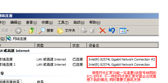 3.网卡汇聚是需要交换机支持802.3AD协议的,否则汇聚后可能效果一般,而且可能会出兼容性问题.