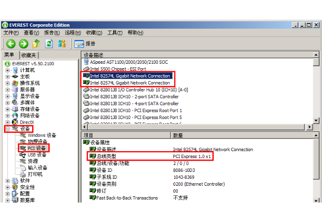 对于网卡接口检测,大家可以借助AIDA这个工具来检查,一些SH3200系列的主板,看上去是2块网卡,但是型号不一样,而且有块是PCI接口的,这种情况下做汇聚实际上是没啥效果的,因为压根就不符合汇聚的要求.