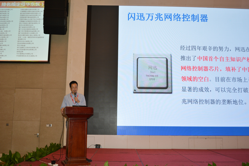 深圳市联瑞电子有限公司(以下简称:深圳联瑞)与北京网迅科技有限公司(以下简称:网迅科技)有幸参与此次盛会,与在座各位专家学者交流探讨。会议首日,网迅科技执行董事王界兵在会上发表重要演讲——《国内首款万兆网络控制器的研制及产业化》,演讲中指出:可靠性设计是企业级芯片的一个重要指标,关键技术与难点包括:容错处理技术、分域独立重启技术、自检技术、数据通路保护技术、错误监测及错误隔断技术。目前,的万兆网络智能控制器全部从美国进口,全球万兆网络控制器的供应商排名前十家全部在美国,它们是:Intel(英特尔)、Broadcom(博通)、Emulex、Chelsio、Mellanox等,而网迅科技在今年推出了首个自主知识产权的万兆网络控制器芯片,完全掌握网络控制器的各项技术,完全拥有网络控制器设计的知识产权,打破了美国的垄断地位,填补了在这一领域的空白。
