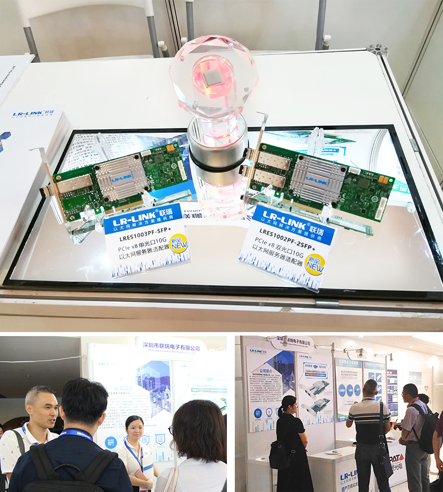 深圳联瑞有幸成为网迅科技此款国产万兆网络控制器芯片的授权商,新上市的两款具有自主知识产权的国产安全可控万兆以太网光纤网卡——LRES1002PF-2SFP+、LRES1003PF-SFP+也在现场展出。新产品具有局域网性能加速、网络安全、网络融合、网络虚拟化、数据中心桥接等多项功能,单端口通讯带宽为10Gbps,芯片的逻辑门数量达到一千八百万,片上SRAM 容量达到25Mbit,支持PCIE3.0串行总线主机接口与SFI/KR等以太网接口,以国产化安全自主可控为亮点吸引了众多商客前来咨询。
