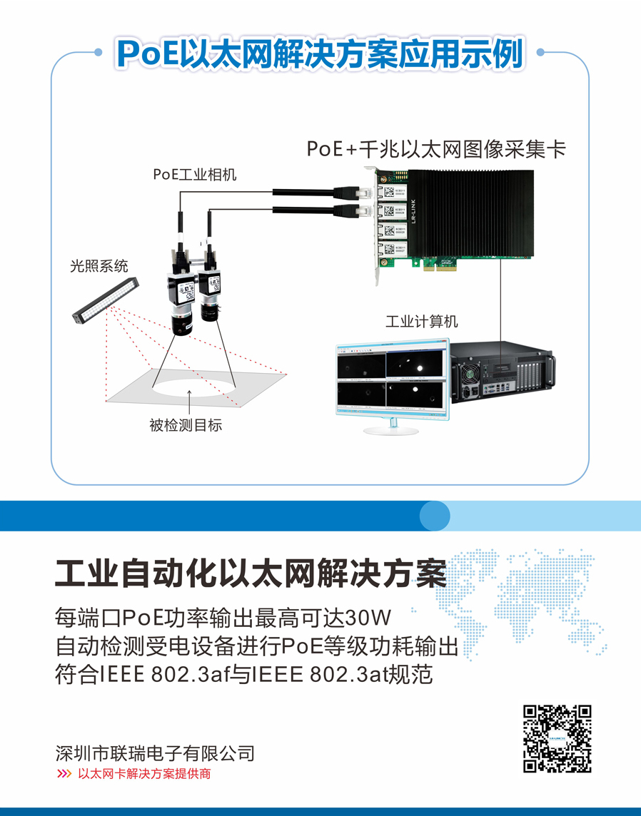 面对如此大规模的需求增长,深圳联瑞持续追随新的应用,旗下LR-LINK品牌推出系列机器视觉以太网卡解决方案,帮助用户轻松构建高效率、低成本的智慧工厂。该系列产品(含PoE图像采集卡、普通以太网图像采集卡)在上海机器视觉展悉数亮相。为期三天的展会现场,深圳联瑞展位人气旺盛,客流络绎不绝,展品凭借独特的功能设计吸引了众多客商驻足咨询。