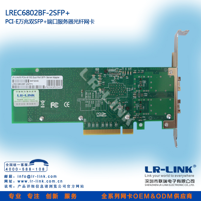 LREC6802BF-2SFP+ PCI-E X8万兆双端口服务器光纤网卡