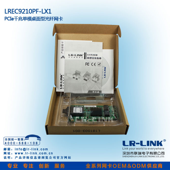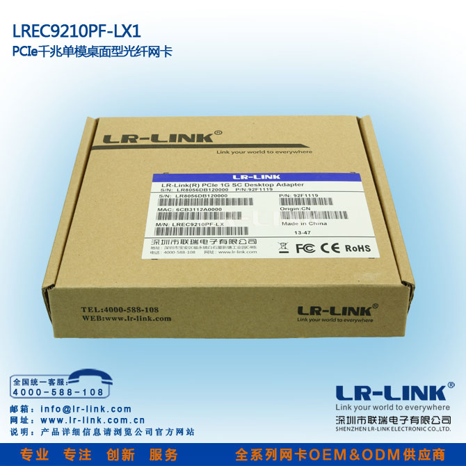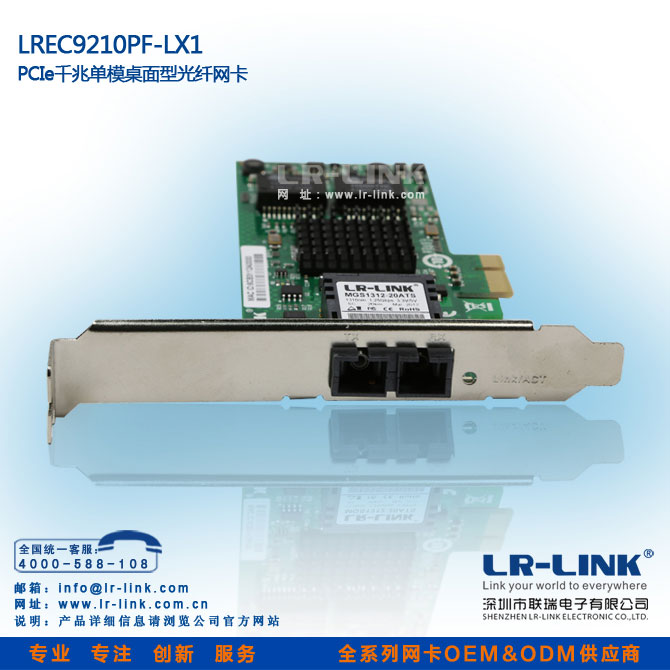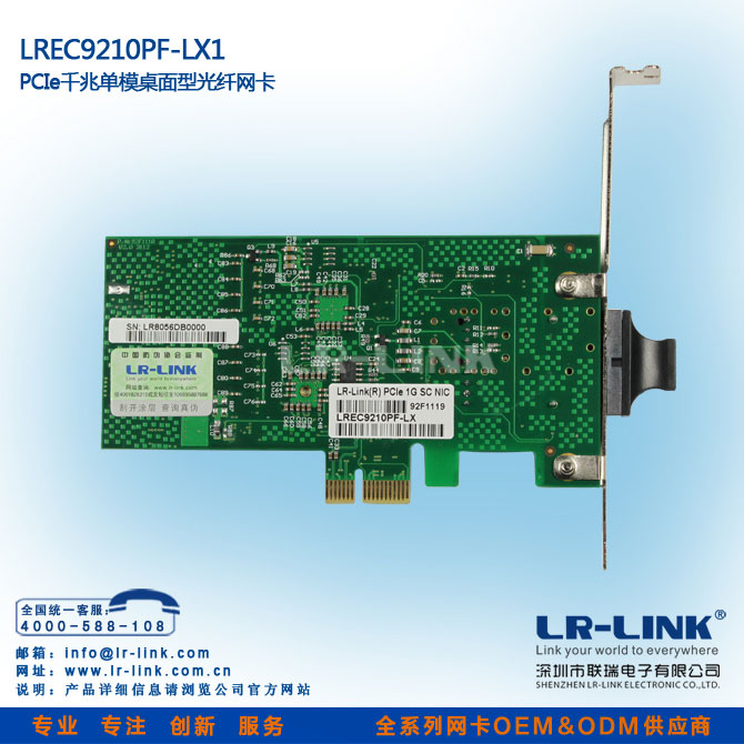 LREC9210PF-LX(PCI-E千兆单模光纤网卡)是一款支持PCI-E总线、可管理的千兆光纤以太网卡。该网卡是深圳联瑞电子有限公司(LR-LINK)倾力打造的光纤网卡品牌——MACNET光纤网卡系列中一款主流千兆光纤网卡。该网卡能够为用户快速的构建千兆网络提供可靠的光纤连接,特别适合于接入信息点的距离超出五类线接入距离(100m)的场所,可彻底取代目前普遍采用RJ45接口以太网卡外接光电转换器的网络结构,为用户提供可靠的光纤到户和光纤到桌面的解决方案。用户可根据使用场合选择光纤接口参数(包括连接头、单/多模光纤、工作距离等)。