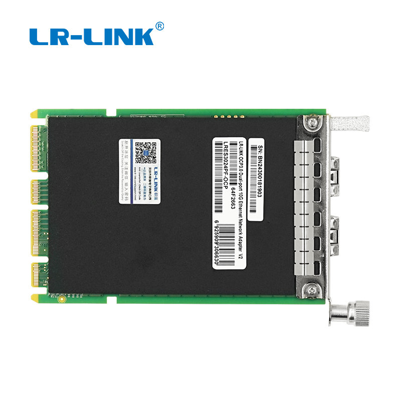 该适配卡具有国产自主知识产权的以太网光纤网卡(LRES3024PF-OCP),具有局域网性能加速、网络安全、网络融合、网络虚拟化、数据中心桥接等多项功能,单端口的传输带宽为10Gbps,主控制器的逻辑门数量达到一千八百万,片上SRAM容量达到25Mbit。主要设计用于服务器和高端设备。